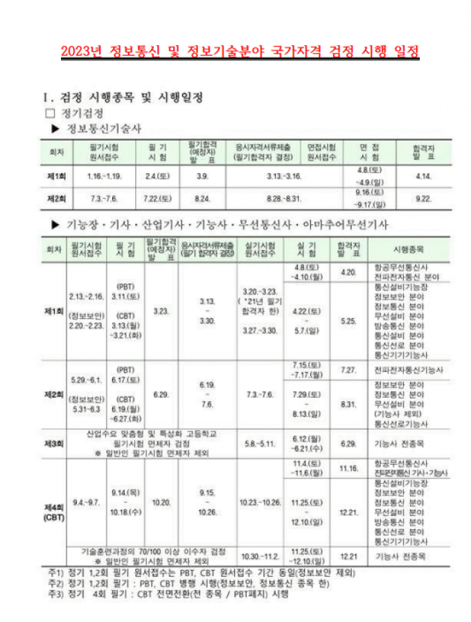 2023년 국가기술자격시험 일정 - 통신직