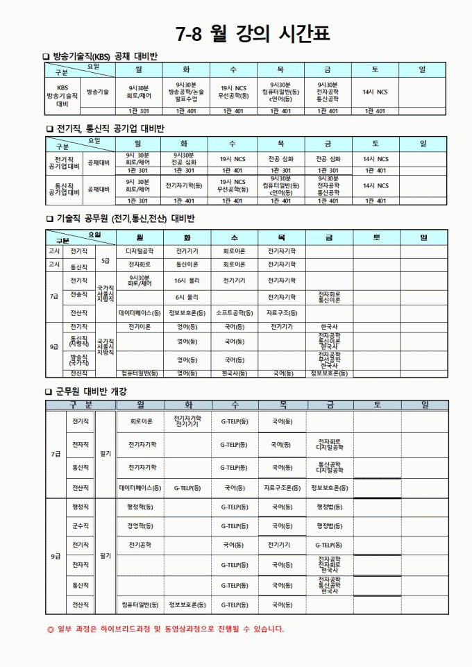 2023년 7~8월 시간표!!