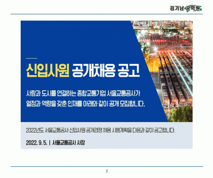 84 서울교통공사 [채용공고] 2022년 서울교통공사 신입사원 공개채용 공고 관리자 2022-09-05