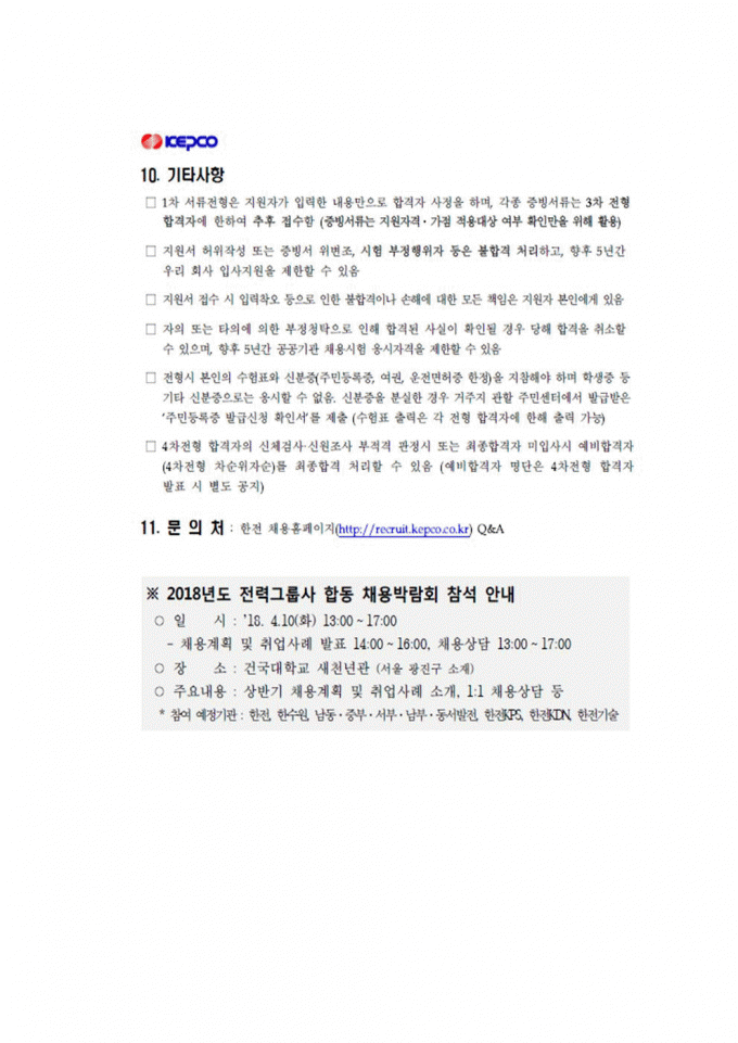 2018년 한국전력공사 채용공고
