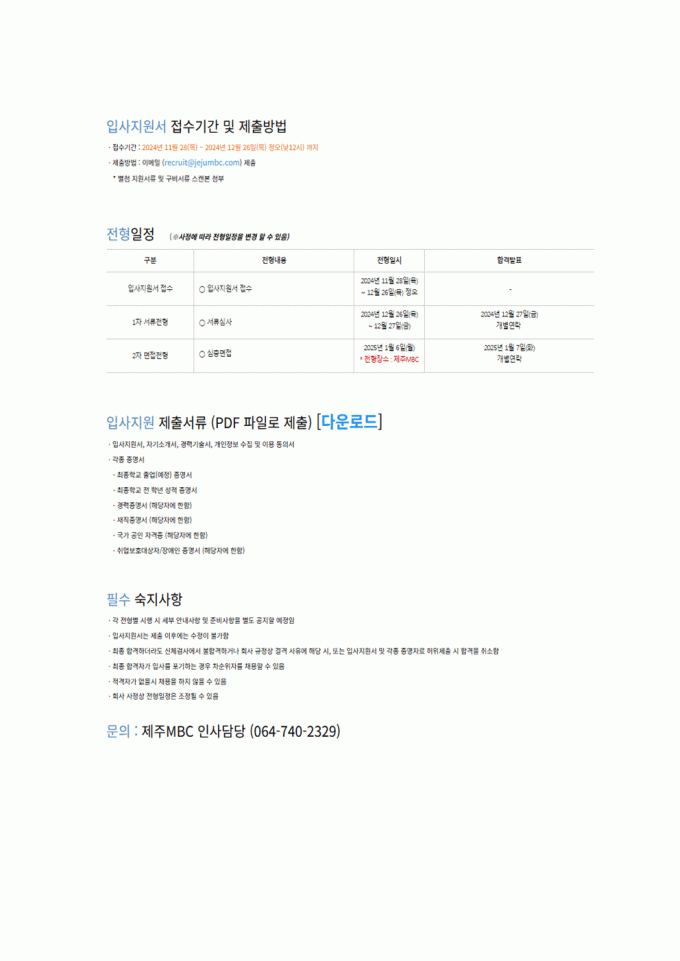2025년 제주MBC 공개 채용!