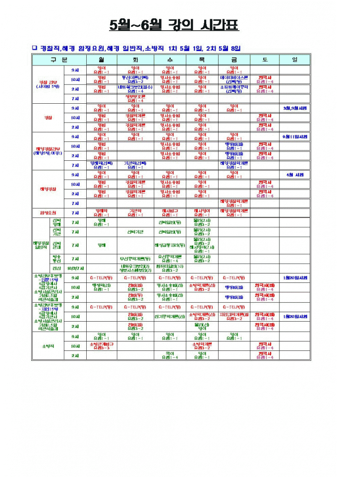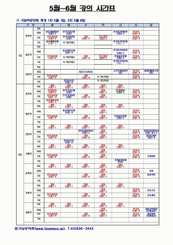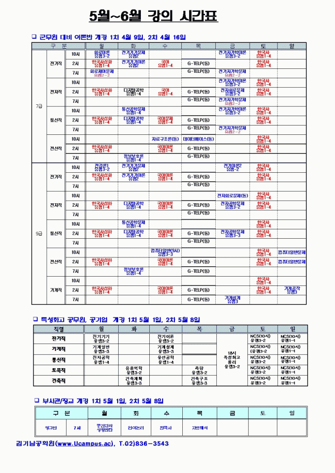 2026년 3월-4월 전기직 통신직 전자직 공무원 군무원 시간표