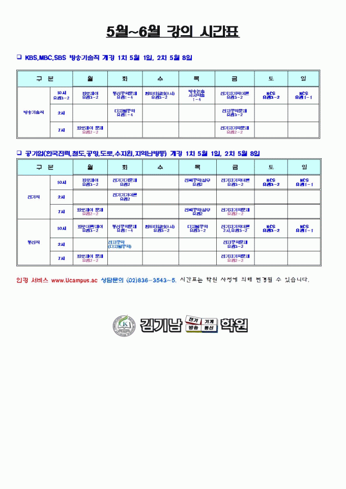 [2018.05] 유캠퍼스, 김기남공학원 5월 개강안내