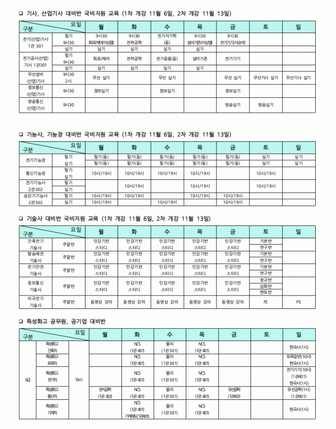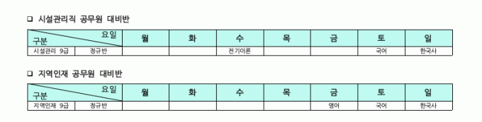 2026년 3월-4월 전기직 통신직 전자직 공무원 군무원 시간표