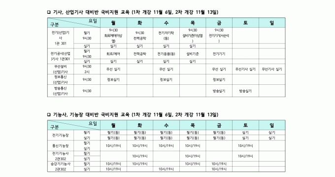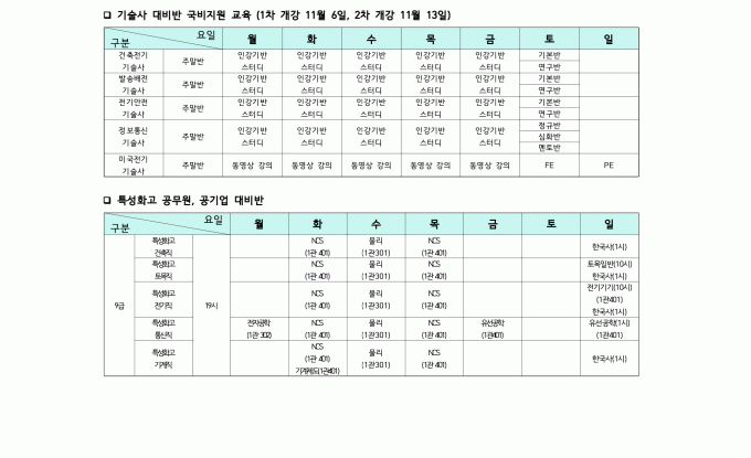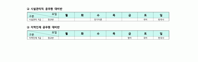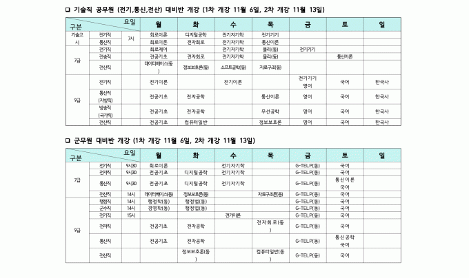 2026년 3월-4월 전기직 통신직 전자직 공무원 군무원 시간표