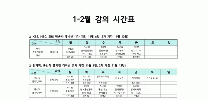 2026년 공채대비 방송기술직/공기업/공무원 개강 안내