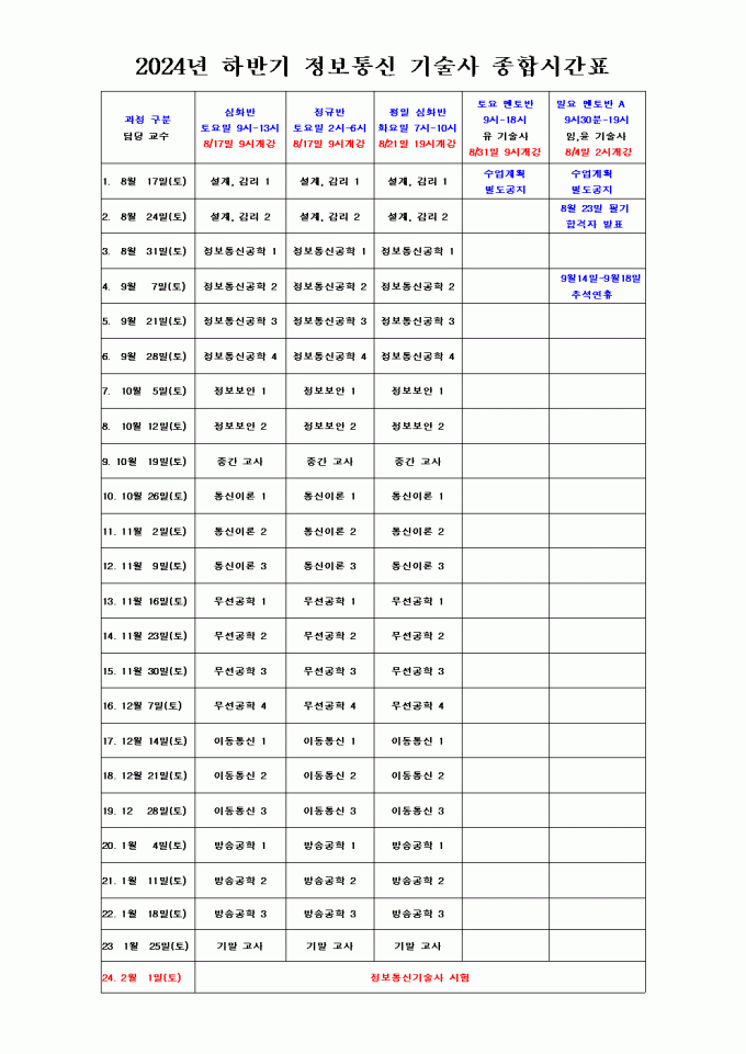 2023년 하반기 정보통신기술사(멘토반) 시간표!!!