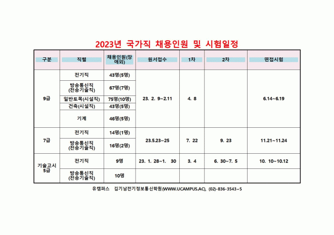 2023년 국가직 채용인원 및 시험일정