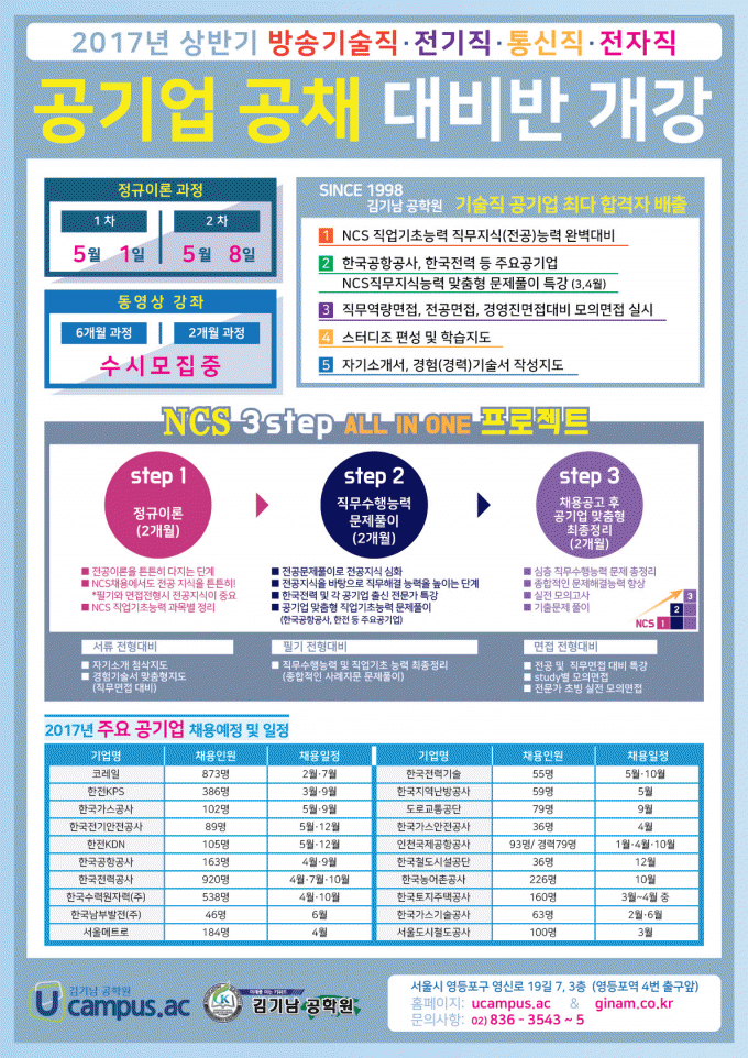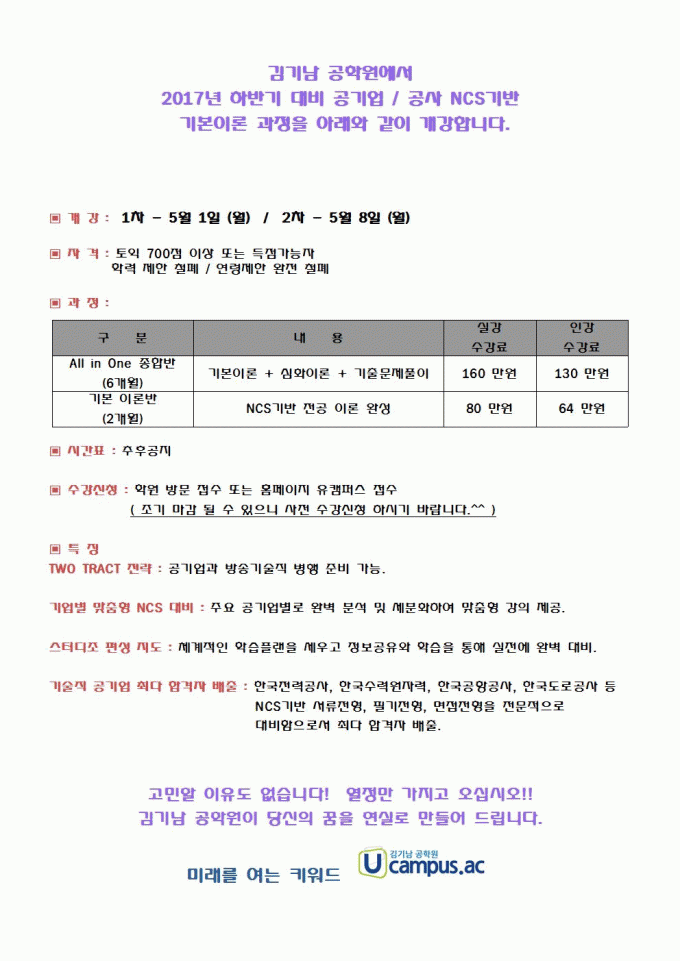2017년 하반기대비 공기업/공사 정규이론 5월 개강반 모집 안내
