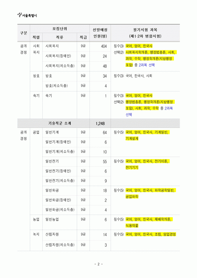 공무원ㆍ군무원 [채용공고] 2021년 제1회 서울특별시 지방공무원 임용시험 시행계획 공고