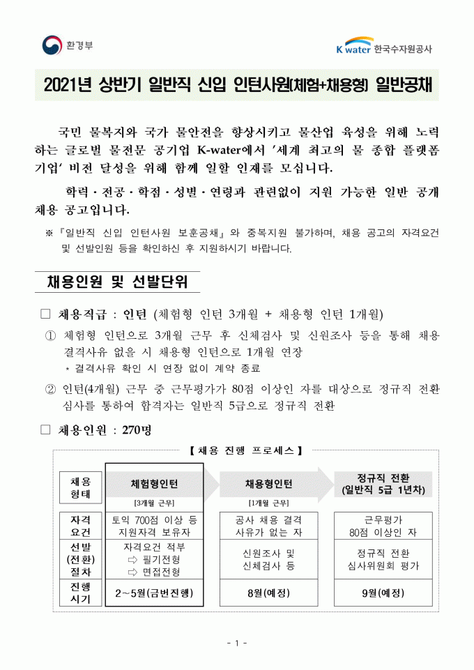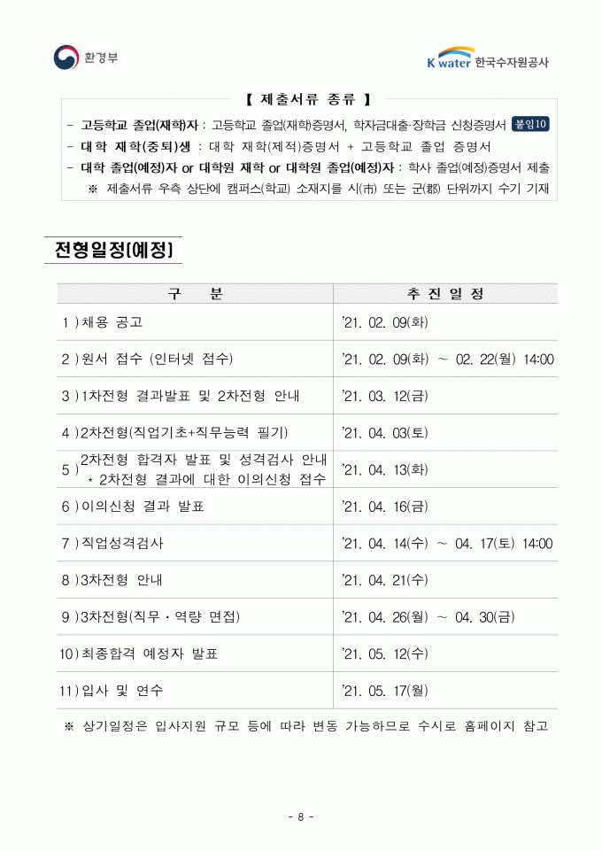 공기업ㆍ방송사 [채용공고] 2021년 수자원공사 채용공고