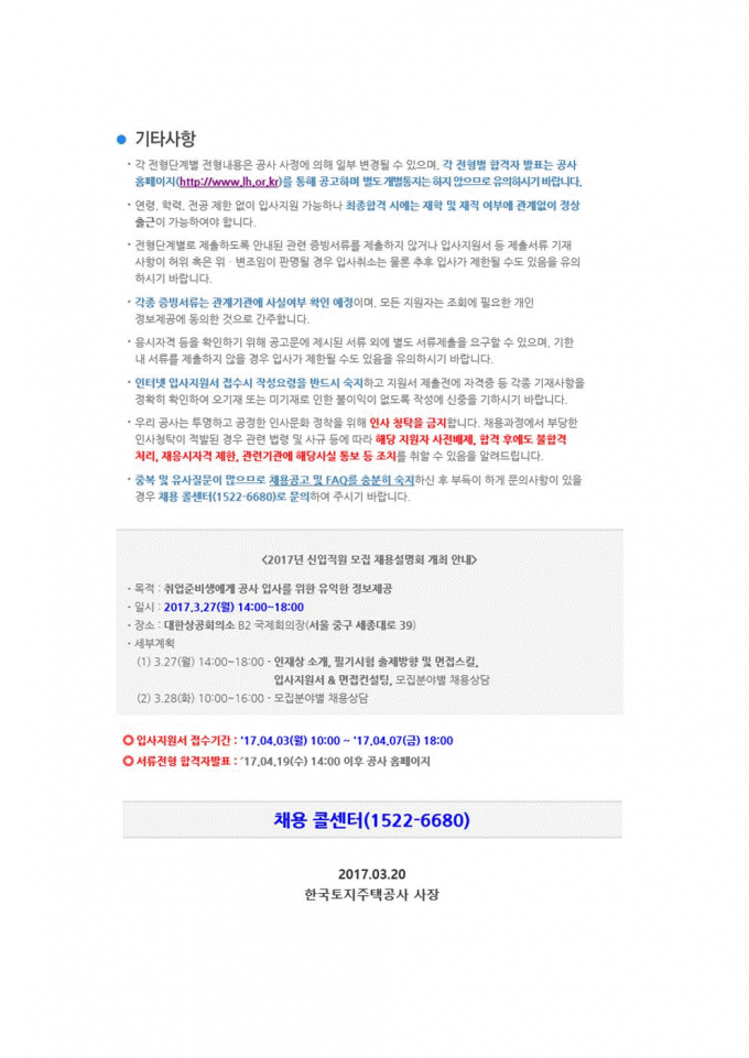 47 공기업 [채용공고] 2017년 상반기 한국토지 주택공사 채용공고 이재선 2017-03-20