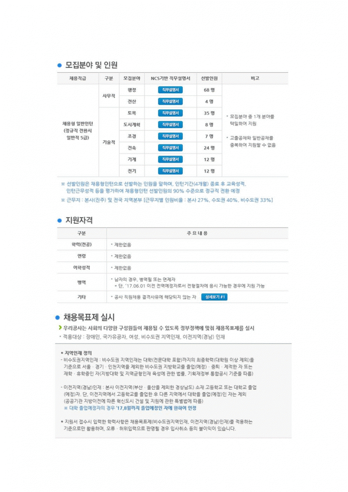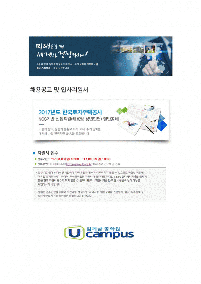 공기업 [채용공고] 2017년 상반기 한국토지 주택공사 채용공고