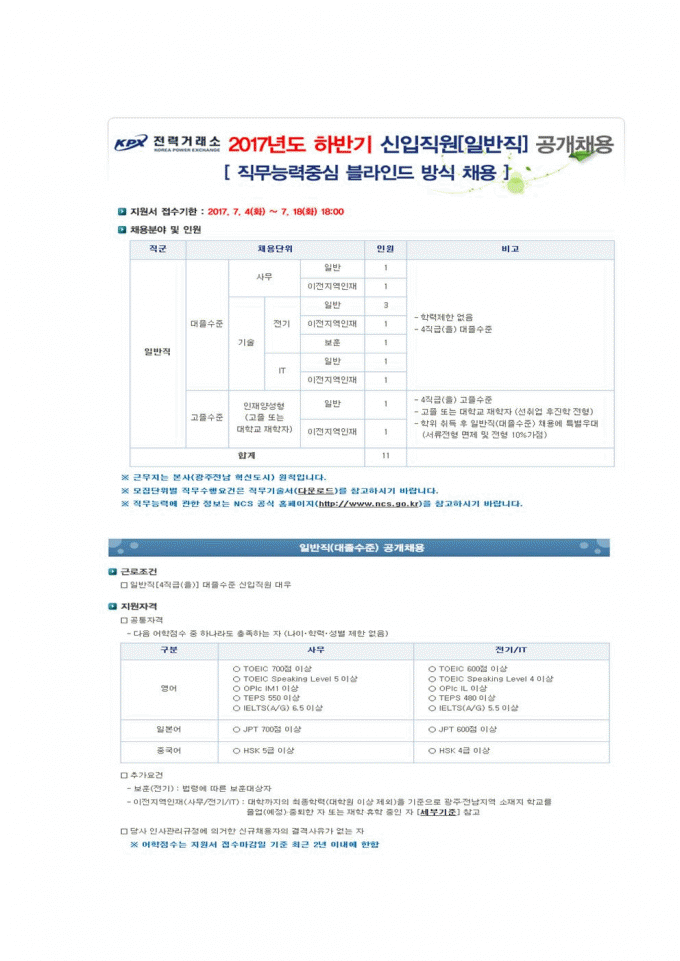53 공기업 [채용공고] 2017년 전력거래소 채용공고 관리자 2017-07-06