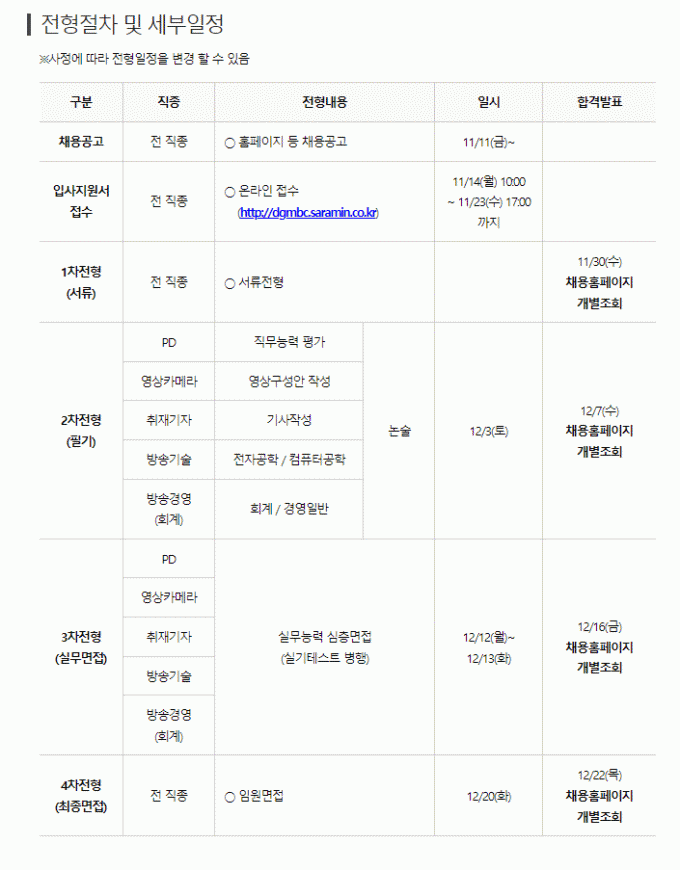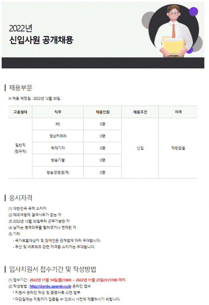 [채용공고] 2022년 대구 MBC 신입사원 채용 공고-12월 30일부터 입사